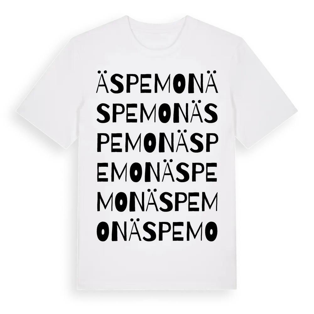 Äspemon ordlek t-shirt är inspirerad av Äspemon i Kronobergs län, Sverige. Tröjan är designad för dig som har en speciell koppling till platsen – oavsett om du bor här, har rötterna här eller bara älskar Äspemon.