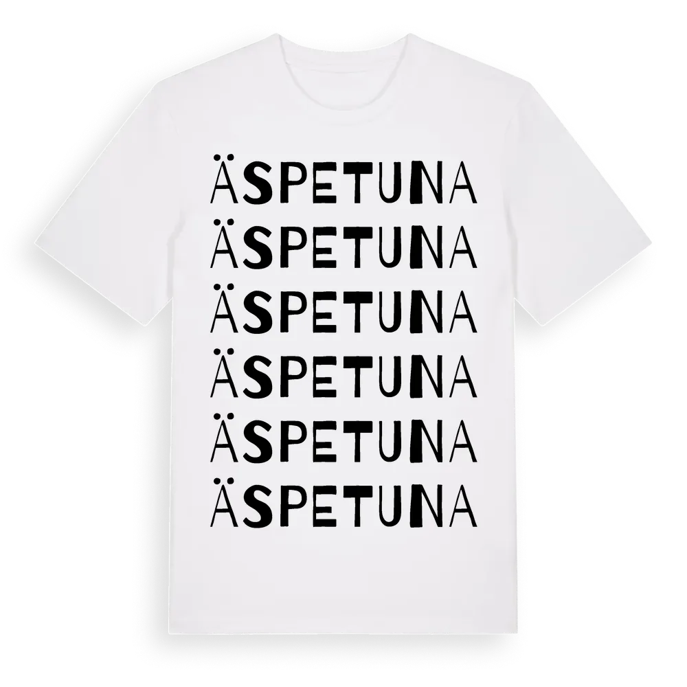 Äspetuna ordlek t-shirt är inspirerad av byn Äspetuna i Kronobergs län, Sverige. Tröjan är designad för dig som har en speciell koppling till platsen – oavsett om du bor här, har rötterna här eller bara älskar Äspetuna.