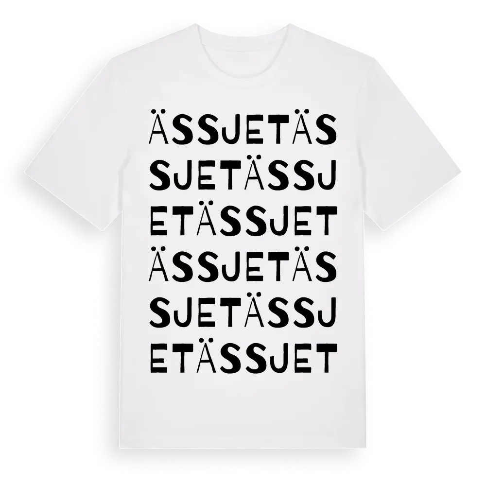 Ässjet ordlek t-shirt är inspirerad av Ässjet i Kronobergs län, Sverige. Tröjan är designad för dig som har en speciell koppling till platsen – oavsett om du bor här, har rötterna här eller bara älskar Ässjet.
