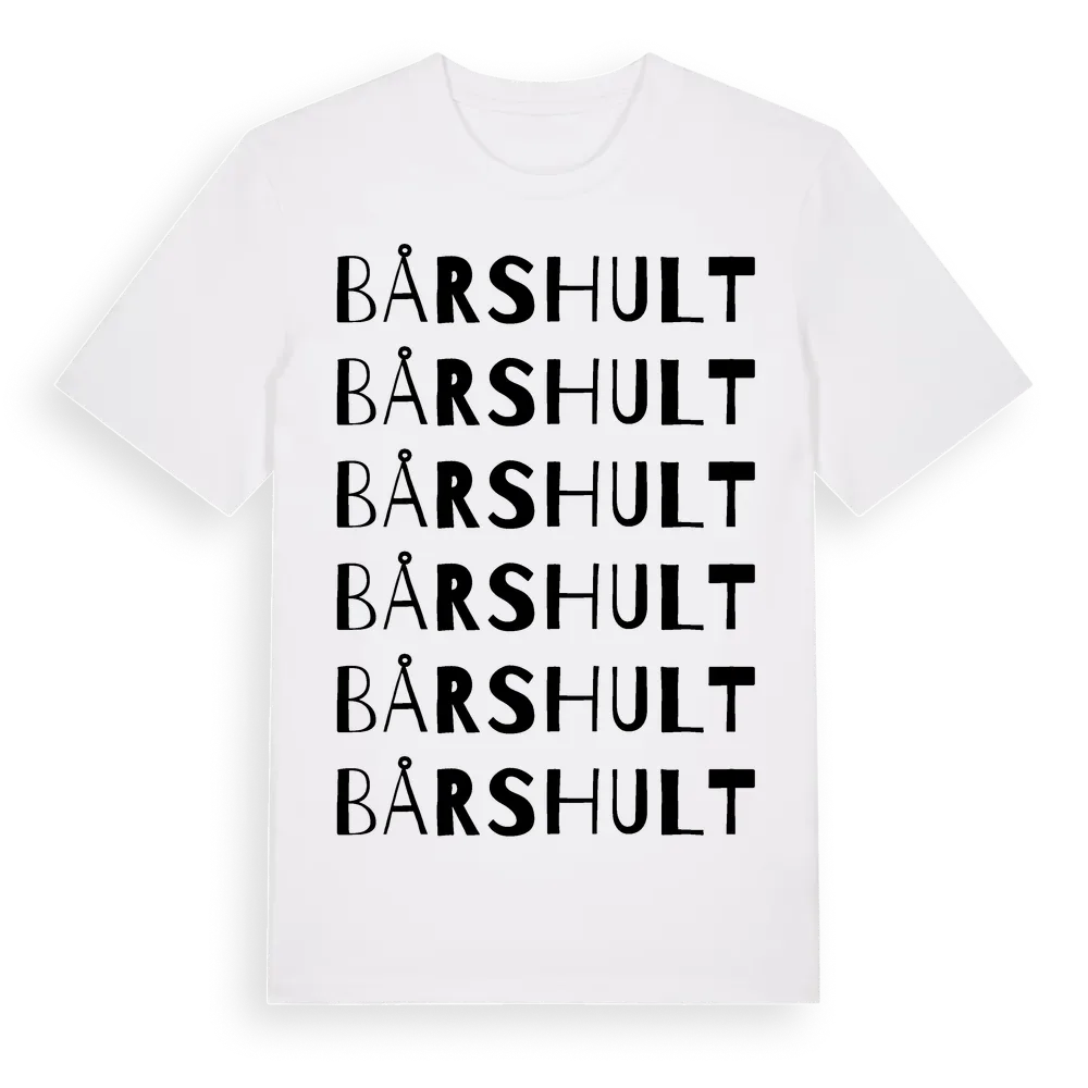 Bårshult ordlek t-shirt är inspirerad av byn Bårshult i Kronobergs län, Sverige. Tröjan är designad för dig som har en speciell koppling till platsen – oavsett om du bor här, har rötterna här eller bara älskar Bårshult.