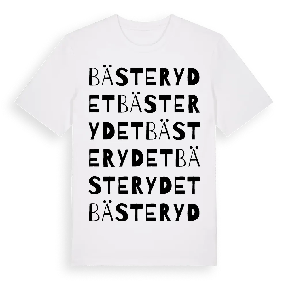 Bästerydet ordlek t-shirt är inspirerad av Bästerydet i Kronobergs län, Sverige. Tröjan är designad för dig som har en speciell koppling till platsen – oavsett om du bor här, har rötterna här eller bara älskar Bästerydet.