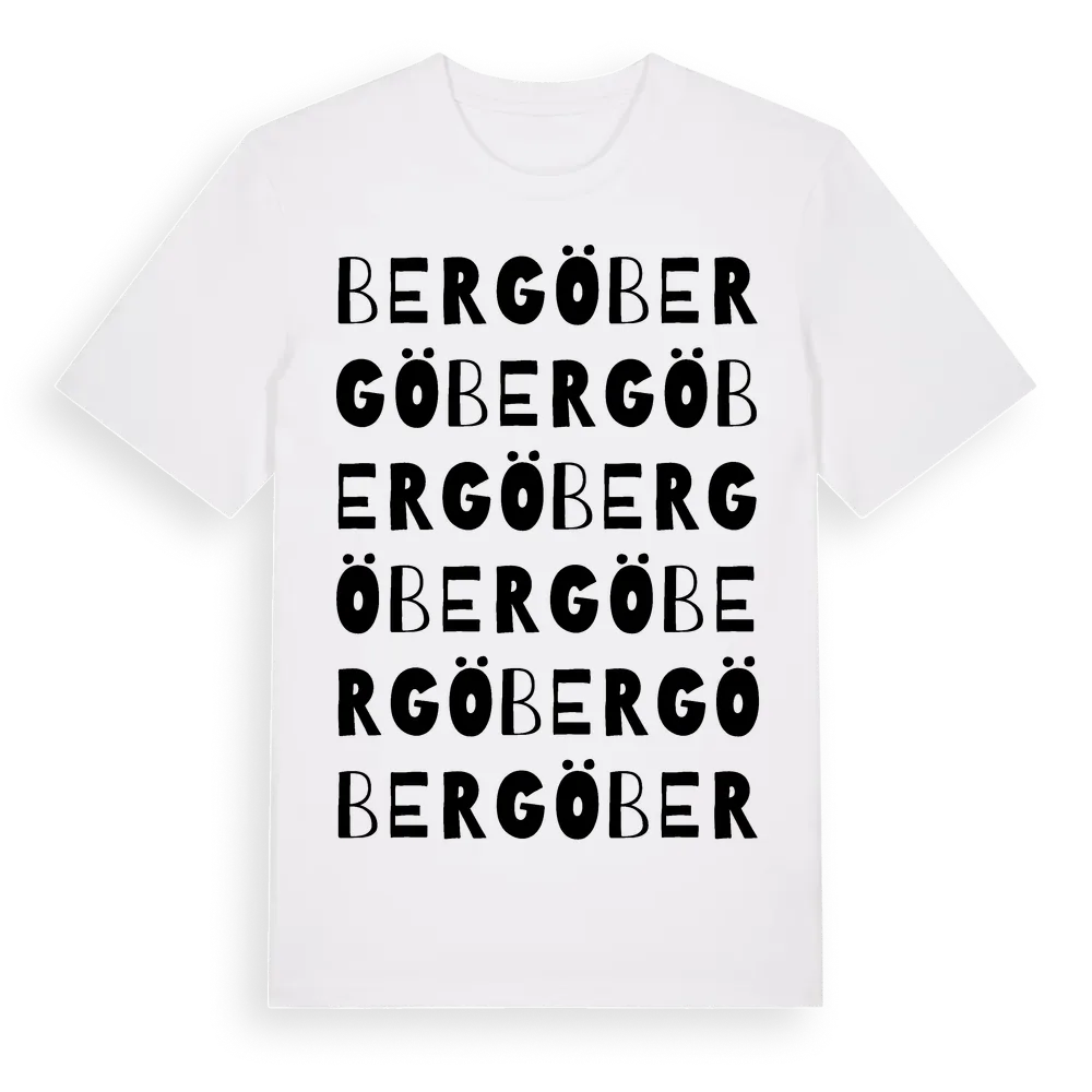 Bergö ordlek t-shirt är inspirerad av Bergö i Kronobergs län, Sverige. Tröjan är designad för dig som har en speciell koppling till platsen – oavsett om du bor här, har rötterna här eller bara älskar Bergö.