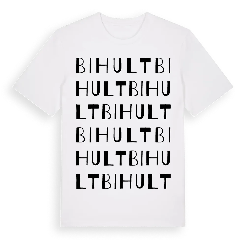 Bihult ordlek t-shirt är inspirerad av byn Bihult i Kronobergs län, Sverige. Tröjan är designad för dig som har en speciell koppling till platsen – oavsett om du bor här, har rötterna här eller bara älskar Bihult.