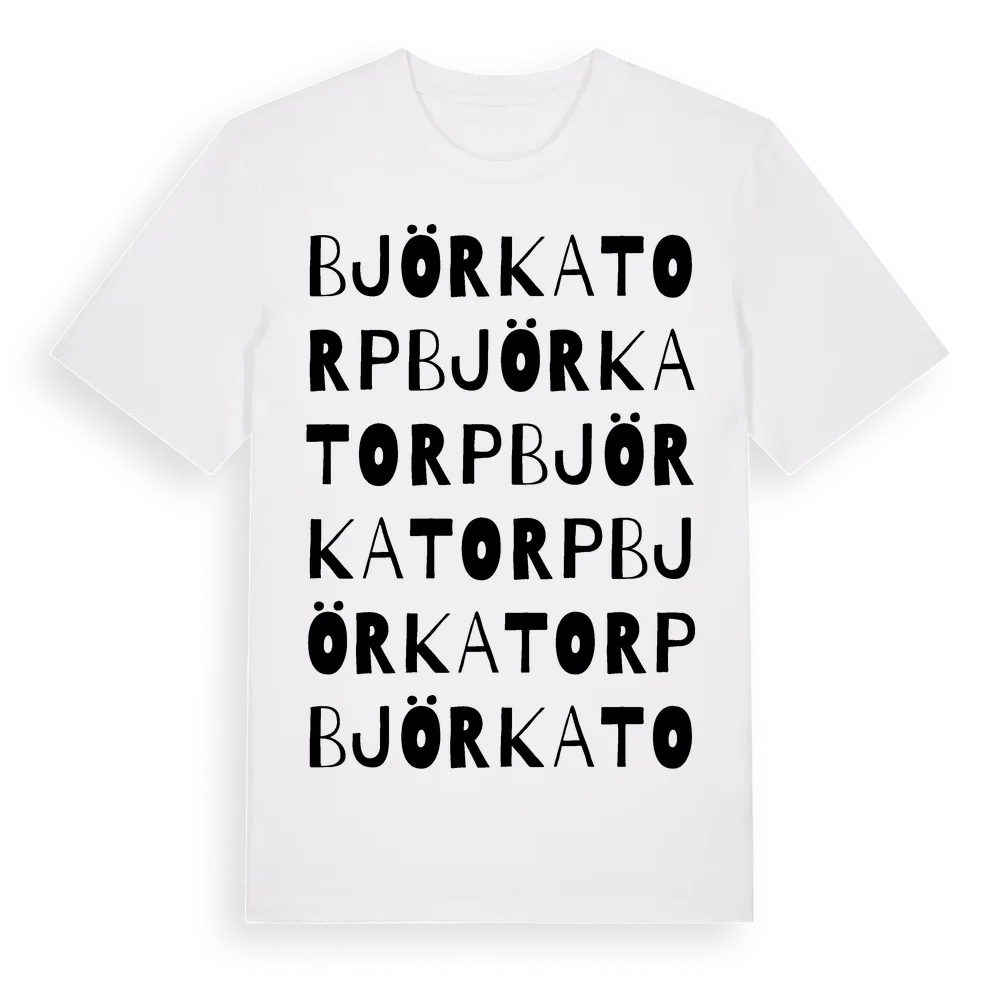 Björkatorp ordlek t-shirt är inspirerad av Björkatorp i Kronobergs län, Sverige. Tröjan är designad för dig som har en speciell koppling till platsen – oavsett om du bor här, har rötterna här eller bara älskar Björkatorp.