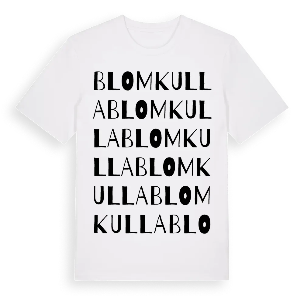 Blomkulla ordlek t-shirt är inspirerad av Blomkulla i Kronobergs län, Sverige. Tröjan är designad för dig som har en speciell koppling till platsen – oavsett om du bor här, har rötterna här eller bara älskar Blomkulla.