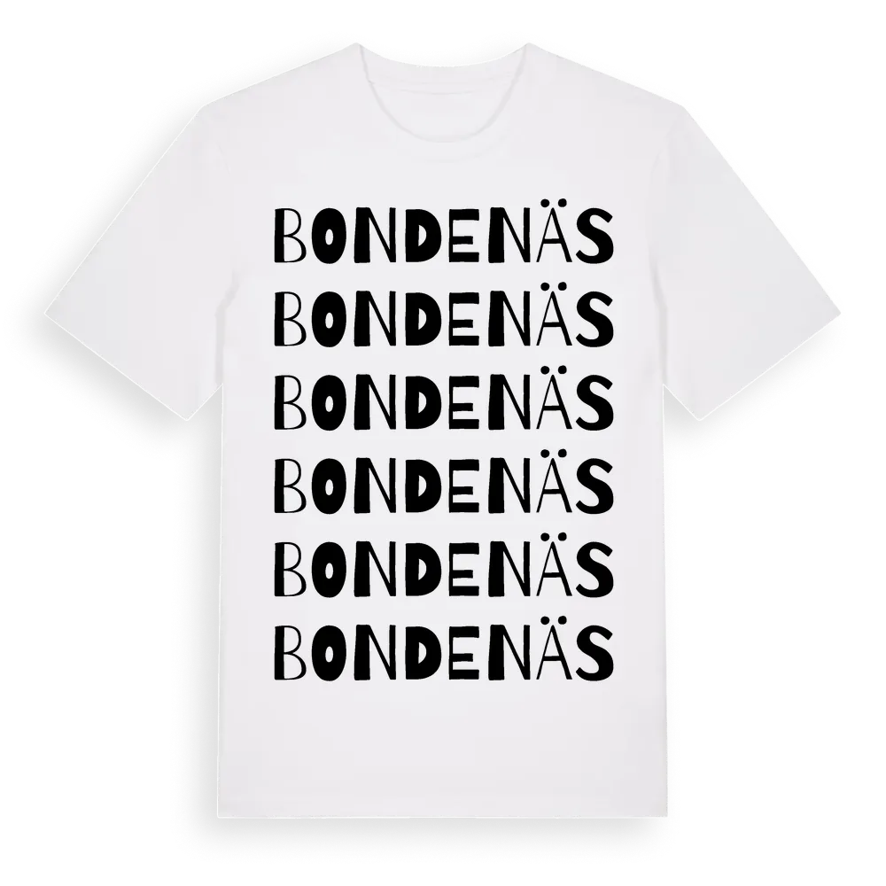Bondenäs ordlek t-shirt är inspirerad av Bondenäs i Kronobergs län, Sverige. Tröjan är designad för dig som har en speciell koppling till platsen – oavsett om du bor här, har rötterna här eller bara älskar Bondenäs.