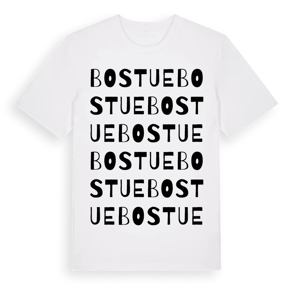 Bostue ordlek t-shirt är inspirerad av Bostue i Kronobergs län, Sverige. Tröjan är designad för dig som har en speciell koppling till platsen – oavsett om du bor här, har rötterna här eller bara älskar Bostue.