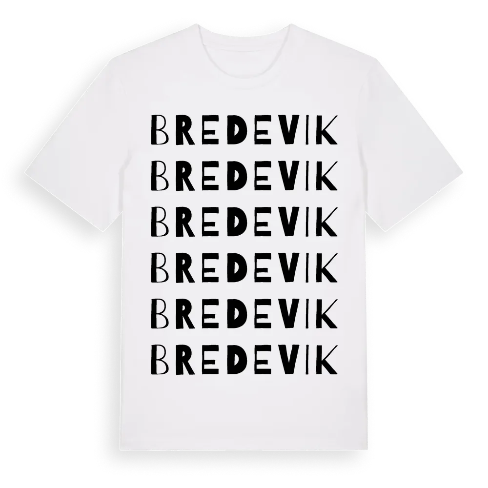 Bredevik ordlek t-shirt är inspirerad av Bredevik i Kronobergs län, Sverige. Tröjan är designad för dig som har en speciell koppling till platsen – oavsett om du bor här, har rötterna här eller bara älskar Bredevik.