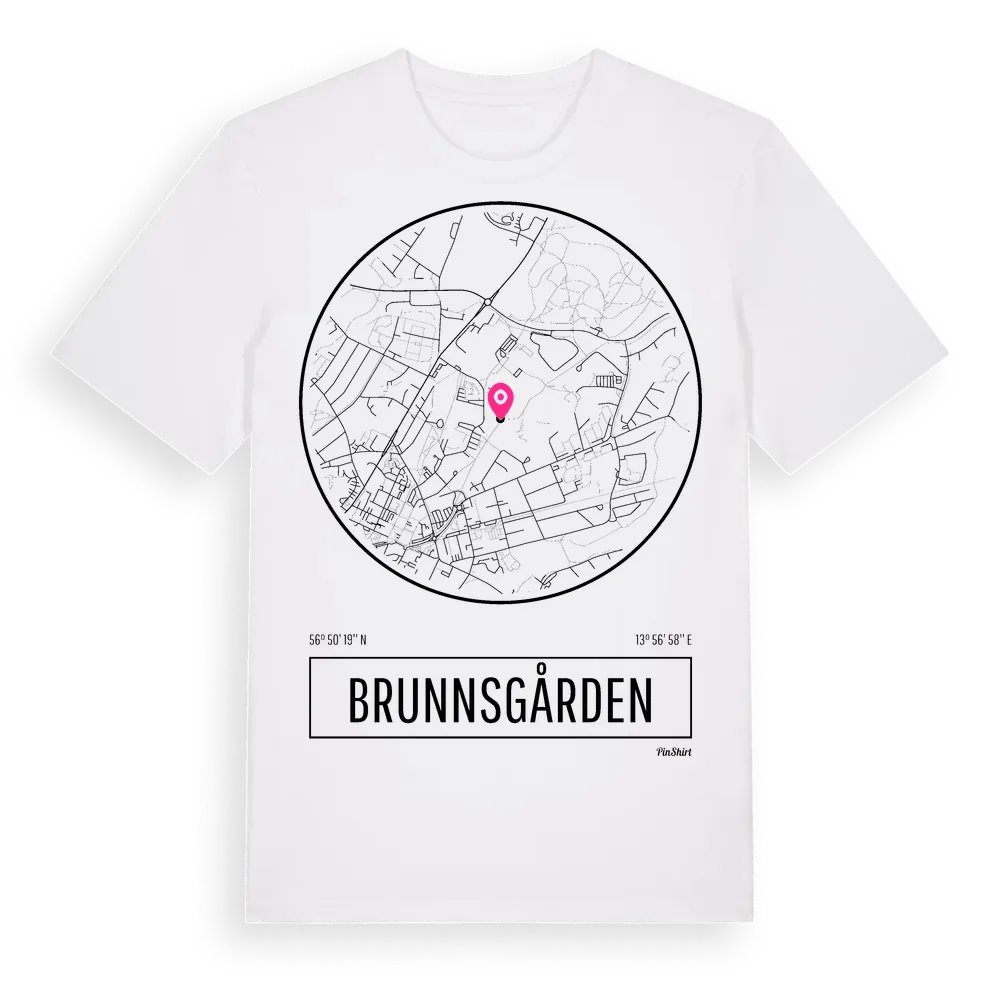 Brunnsgården t-shirt är inspirerad av stadsdelen Brunnsgården i Kronobergs län, Sverige. Tröjan är designad för dig som har en speciell koppling till platsen – oavsett om du bor här, har rötterna här eller bara älskar Brunnsgården.