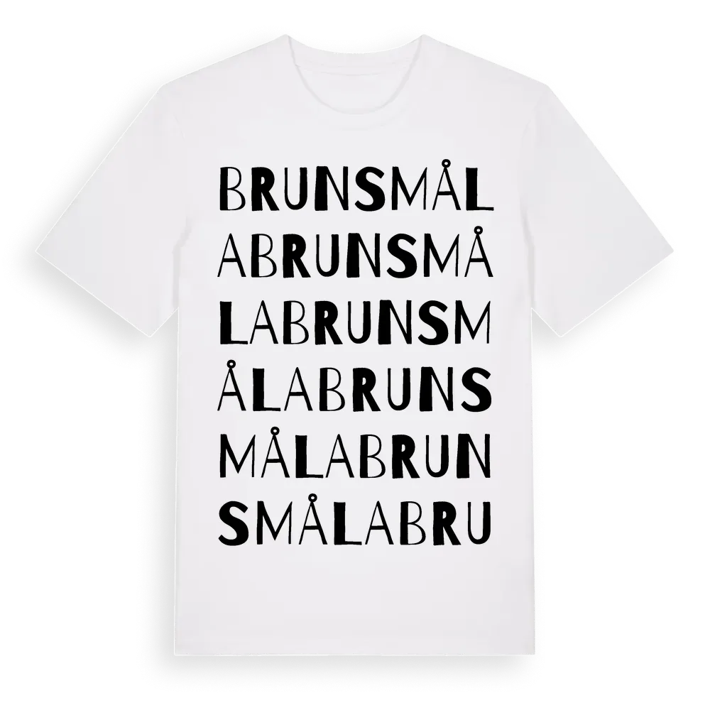 Brunsmåla ordlek t-shirt är inspirerad av byn Brunsmåla i Kronobergs län, Sverige. Tröjan är designad för dig som har en speciell koppling till platsen – oavsett om du bor här, har rötterna här eller bara älskar Brunsmåla.