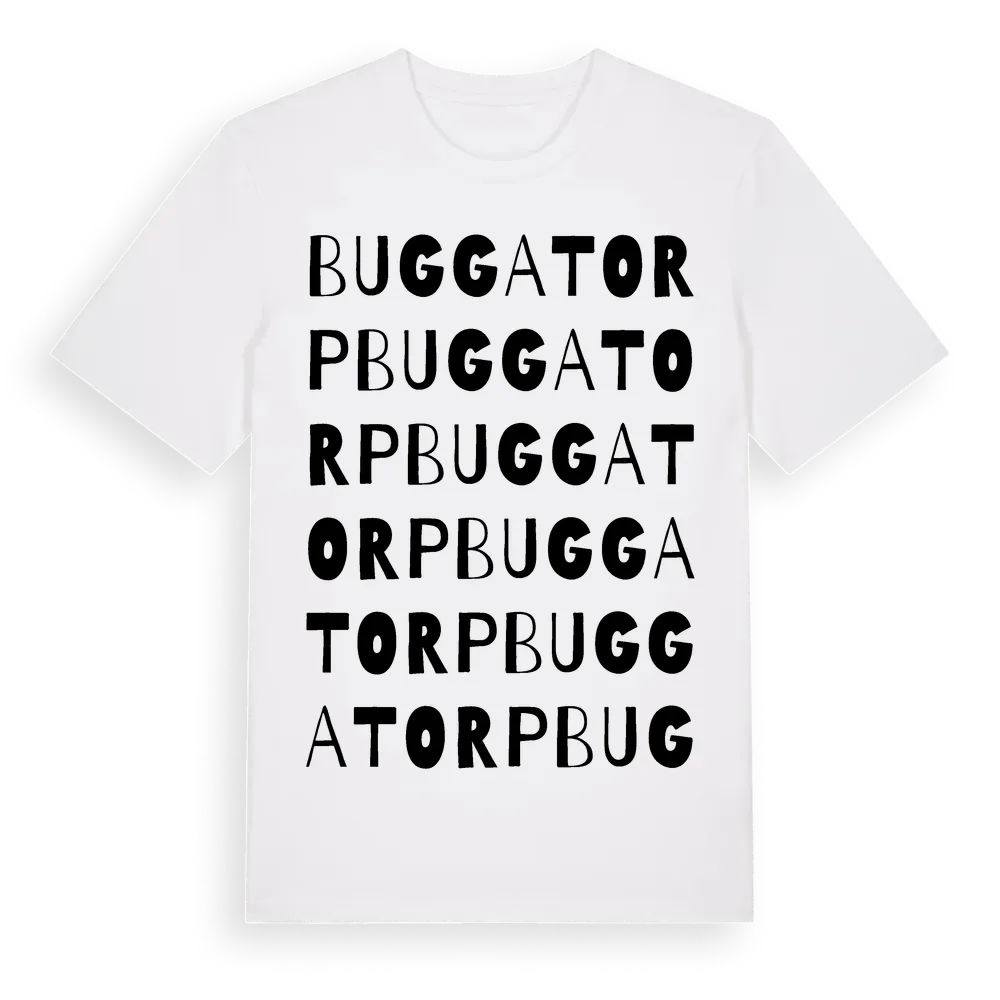 En ordlek byggd på Buggatorps namn. Subtilt och klurig – ett motiv som bara de som verkligen känner platsen fullt ut förstår. Premium bomull, unisex – från byn Buggatorp i Kronobergs län.