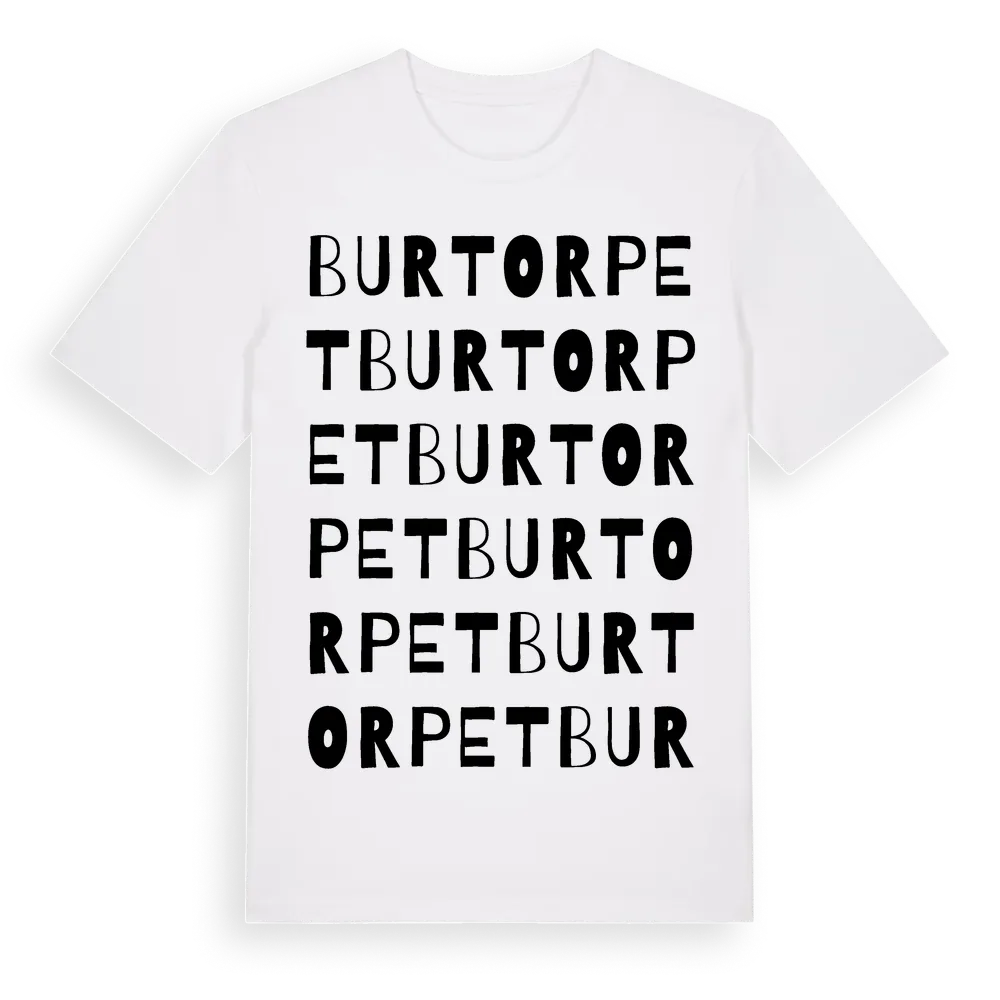 Burtorpet ordlek t-shirt är inspirerad av Burtorpet i Kronobergs län, Sverige. Tröjan är designad för dig som har en speciell koppling till platsen – oavsett om du bor här, har rötterna här eller bara älskar Burtorpet.