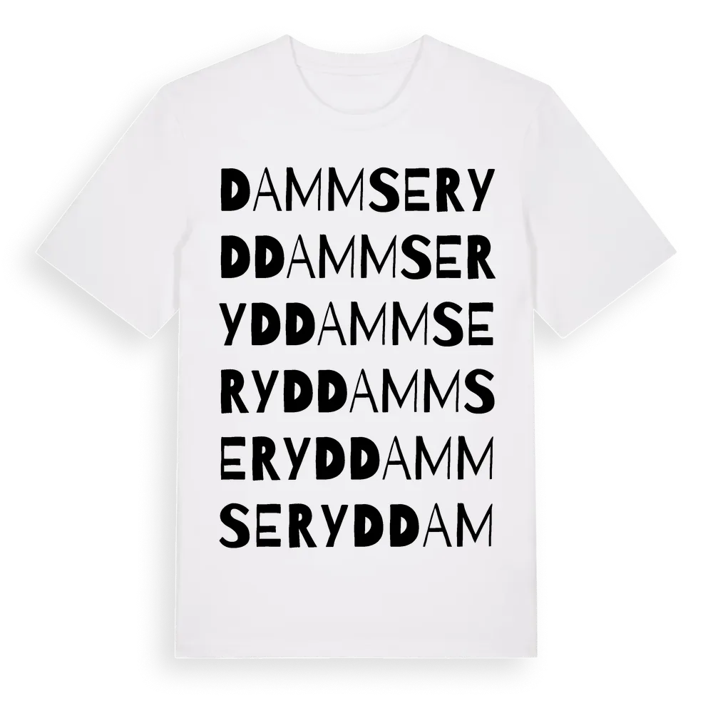 Dammseryd ordlek t-shirt är inspirerad av Dammseryd i Kronobergs län, Sverige. Tröjan är designad för dig som har en speciell koppling till platsen – oavsett om du bor här, har rötterna här eller bara älskar Dammseryd.