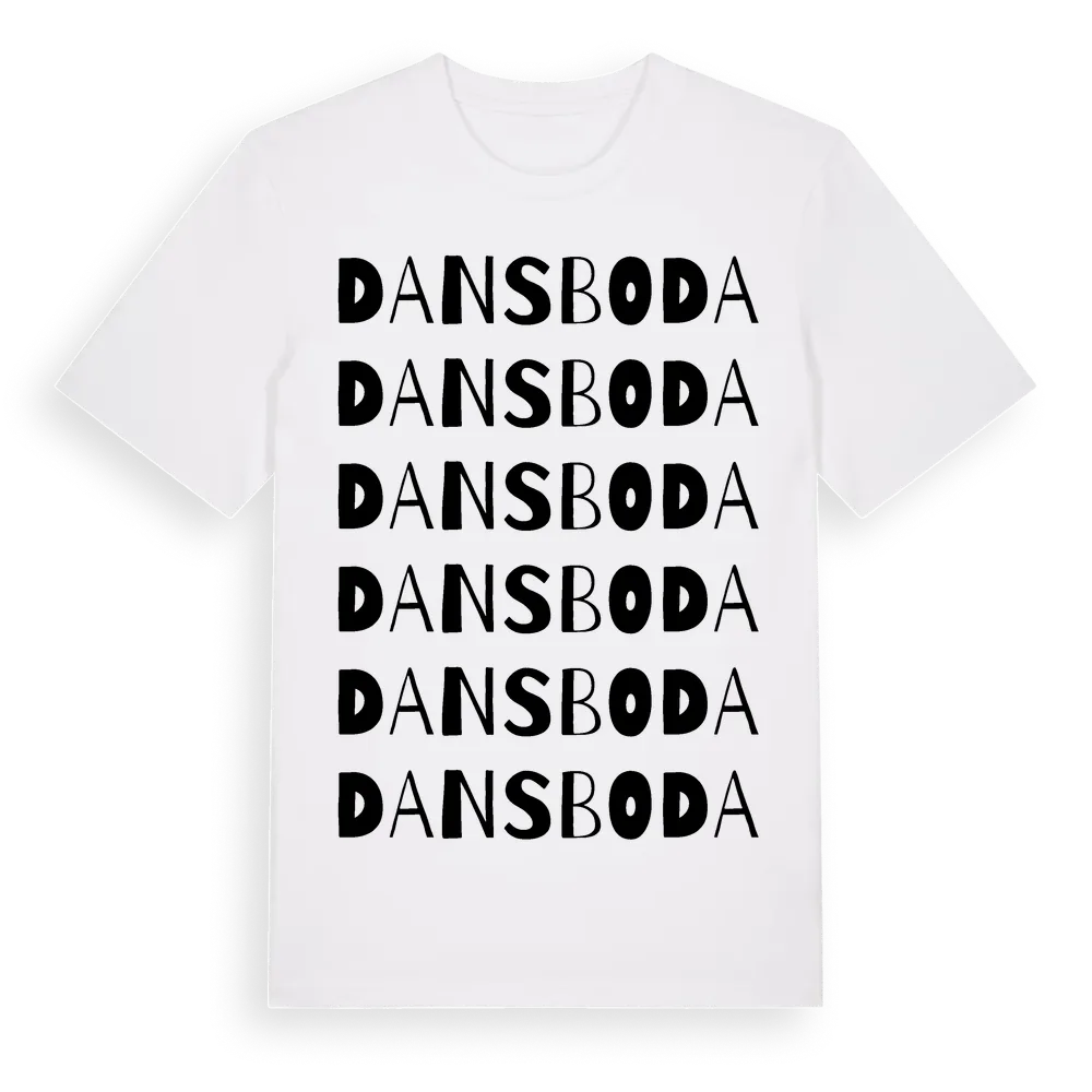 Dansboda ordlek t-shirt är inspirerad av Dansboda i Kronobergs län, Sverige. Tröjan är designad för dig som har en speciell koppling till platsen – oavsett om du bor här, har rötterna här eller bara älskar Dansboda.