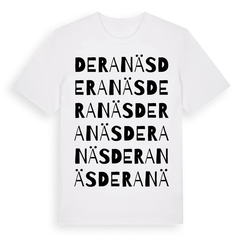 Deranäs ordlek t-shirt är inspirerad av byn Deranäs i Kronobergs län, Sverige. Tröjan är designad för dig som har en speciell koppling till platsen – oavsett om du bor här, har rötterna här eller bara älskar Deranäs.