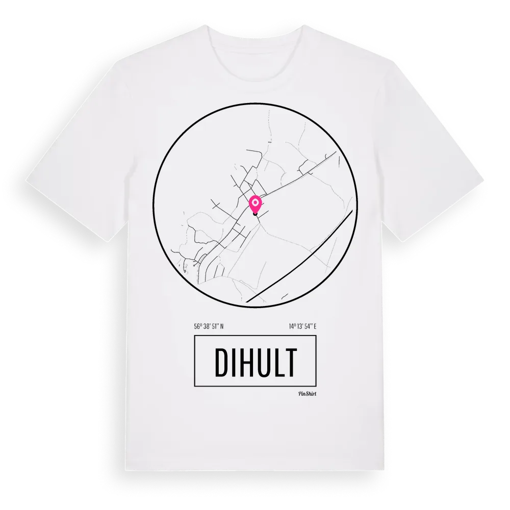 Dihult t-shirt är inspirerad av stadsdelen Dihult i Kronobergs län, Sverige. Tröjan är designad för dig som har en speciell koppling till platsen – oavsett om du bor här, har rötterna här eller bara älskar Dihult.