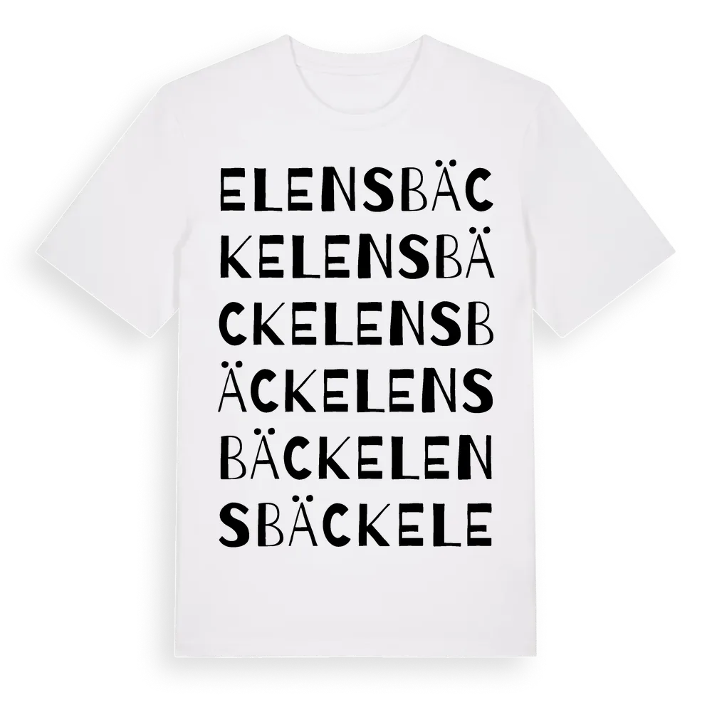 Elensbäck ordlek t-shirt är inspirerad av Elensbäck i Kronobergs län, Sverige. Tröjan är designad för dig som har en speciell koppling till platsen – oavsett om du bor här, har rötterna här eller bara älskar Elensbäck.
