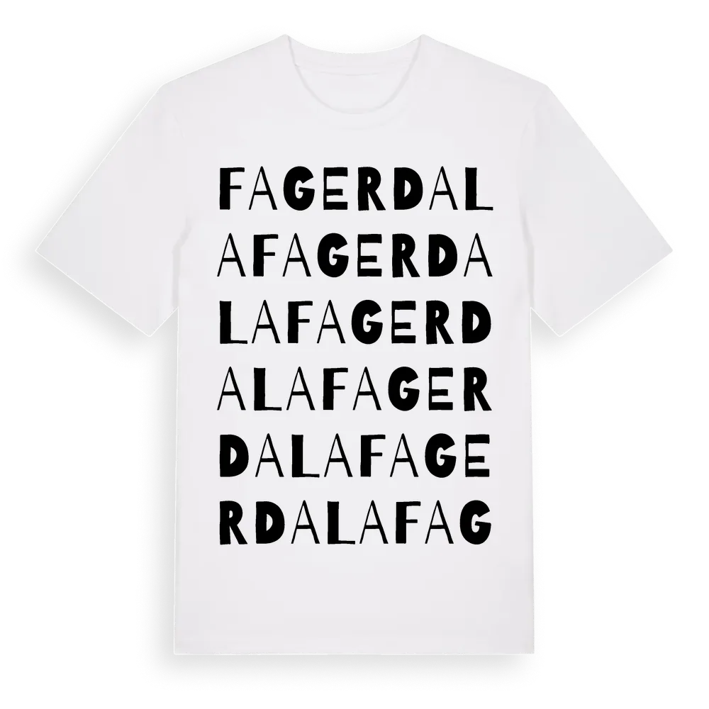 Fagerdala ordlek t-shirt är inspirerad av byn Fagerdala i Kronobergs län, Sverige. Tröjan är designad för dig som har en speciell koppling till platsen – oavsett om du bor här, har rötterna här eller bara älskar Fagerdala.