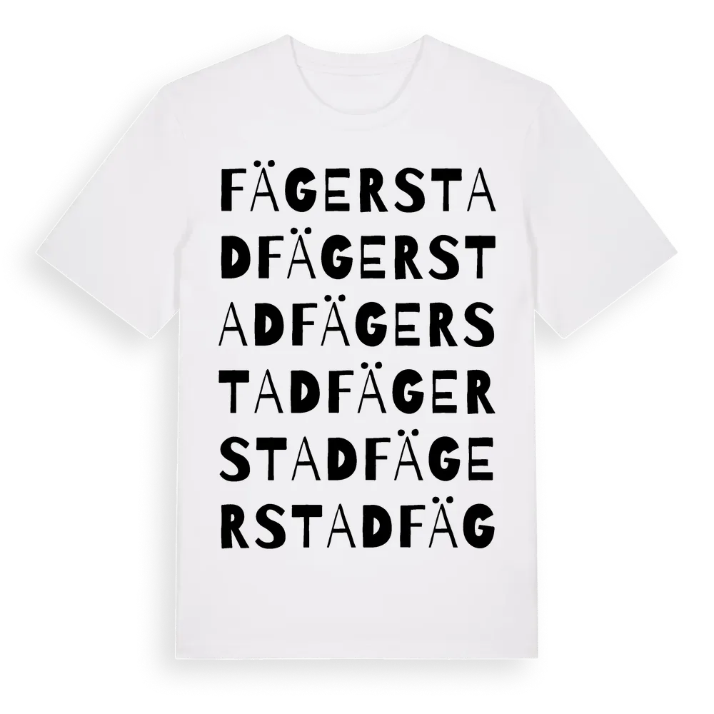 Fägerstad ordlek t-shirt är inspirerad av byn Fägerstad i Kronobergs län, Sverige. Tröjan är designad för dig som har en speciell koppling till platsen – oavsett om du bor här, har rötterna här eller bara älskar Fägerstad.