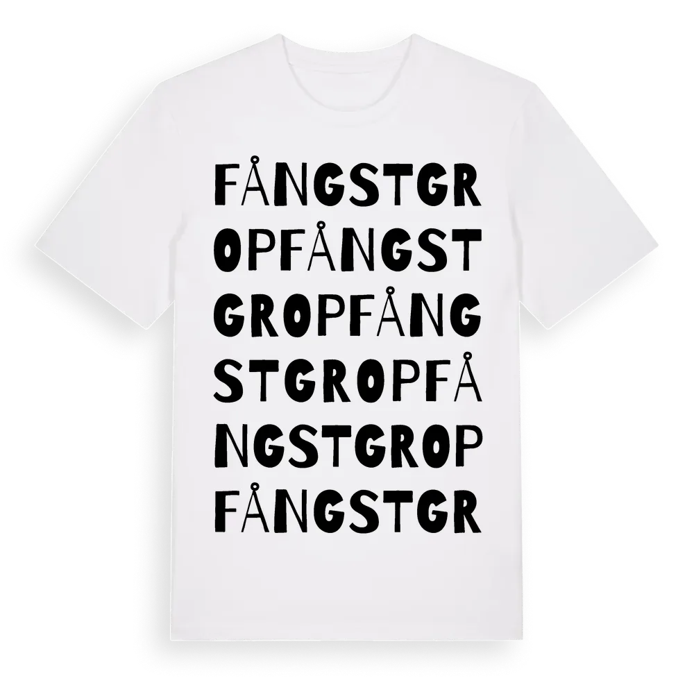 Fångstgrop ordlek t-shirt är inspirerad av Fångstgrop i Kronobergs län, Sverige. Tröjan är designad för dig som har en speciell koppling till platsen – oavsett om du bor här, har rötterna här eller bara älskar Fångstgrop.