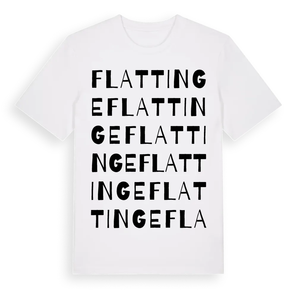 En ordlek byggd på Flattinges namn. Subtilt och klurig – ett motiv som bara de som verkligen känner platsen fullt ut förstår. Premium bomull, unisex – från byn Flattinge i Kronobergs län.
