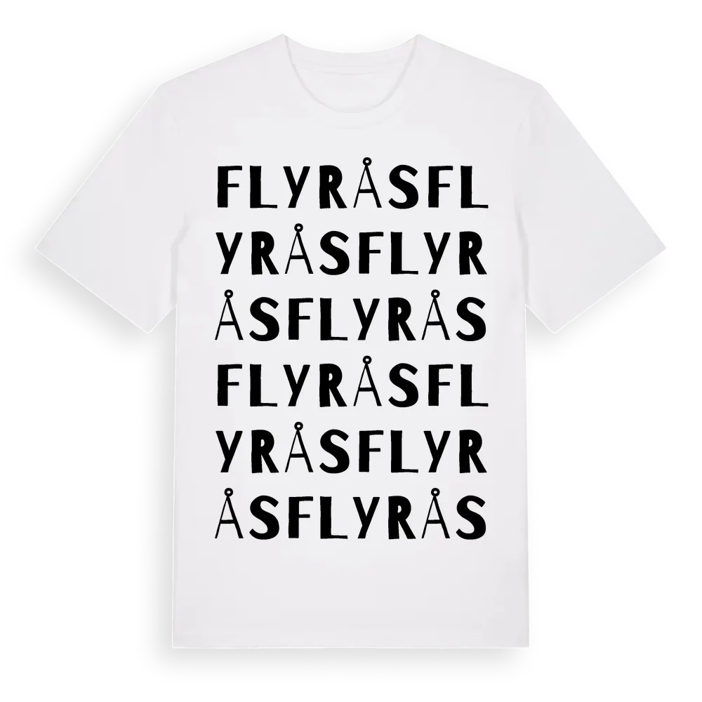 Flyrås ordlek t-shirt är inspirerad av Flyrås i Kronobergs län, Sverige. Tröjan är designad för dig som har en speciell koppling till platsen – oavsett om du bor här, har rötterna här eller bara älskar Flyrås.