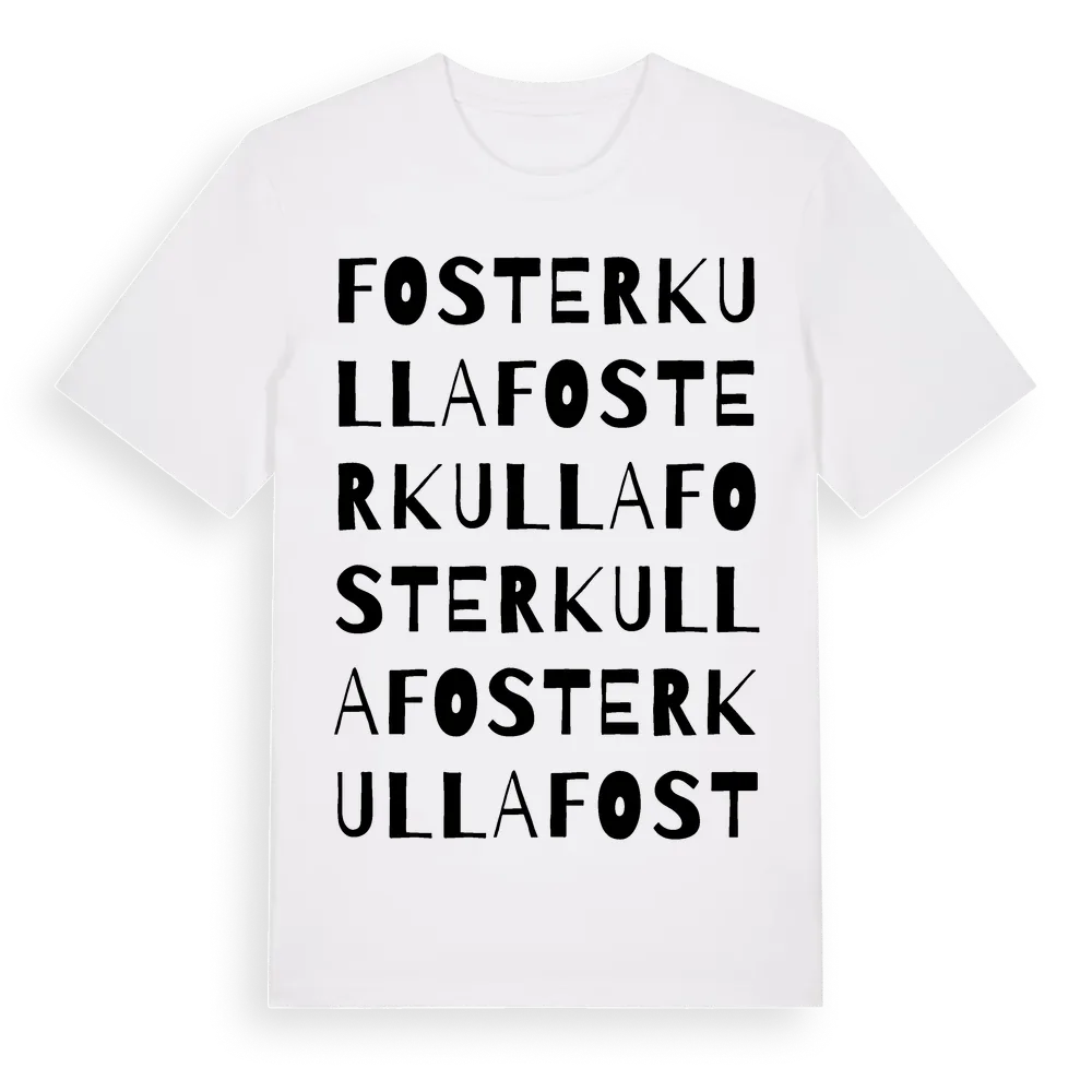 Fosterkulla ordlek t-shirt är inspirerad av Fosterkulla i Kronobergs län, Sverige. Tröjan är designad för dig som har en speciell koppling till platsen – oavsett om du bor här, har rötterna här eller bara älskar Fosterkulla.