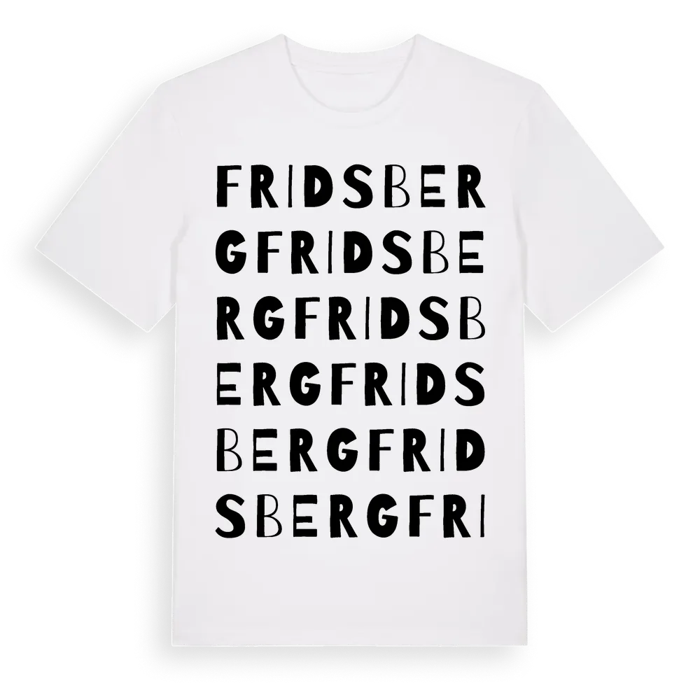 Fridsberg ordlek t-shirt är inspirerad av Fridsberg i Kronobergs län, Sverige. Tröjan är designad för dig som har en speciell koppling till platsen – oavsett om du bor här, har rötterna här eller bara älskar Fridsberg.