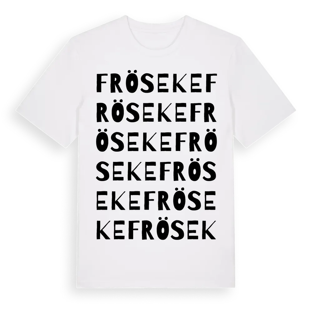 Fröseke ordlek t-shirt är inspirerad av byn Fröseke i Kronobergs län, Sverige. Tröjan är designad för dig som har en speciell koppling till platsen – oavsett om du bor här, har rötterna här eller bara älskar Fröseke.