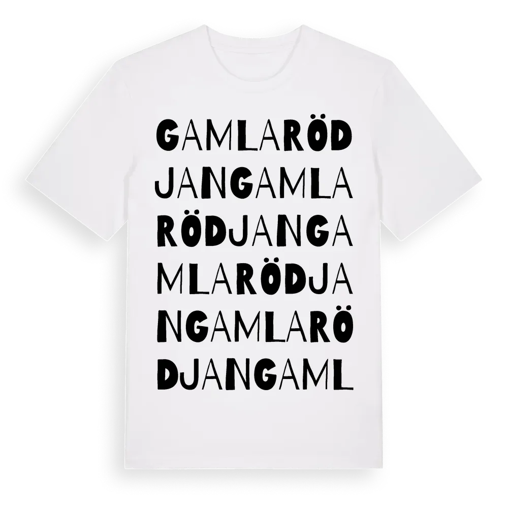 Gamlarödjan ordlek t-shirt är inspirerad av byn Gamlarödjan i Kronobergs län, Sverige. Tröjan är designad för dig som har en speciell koppling till platsen – oavsett om du bor här, har rötterna här eller bara älskar Gamlarödjan.