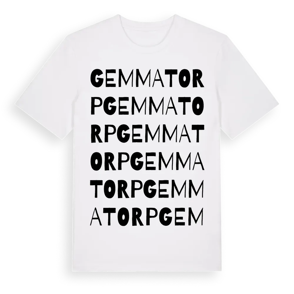 Gemmatorp ordlek t-shirt är inspirerad av byn Gemmatorp i Kronobergs län, Sverige. Tröjan är designad för dig som har en speciell koppling till platsen – oavsett om du bor här, har rötterna här eller bara älskar Gemmatorp.