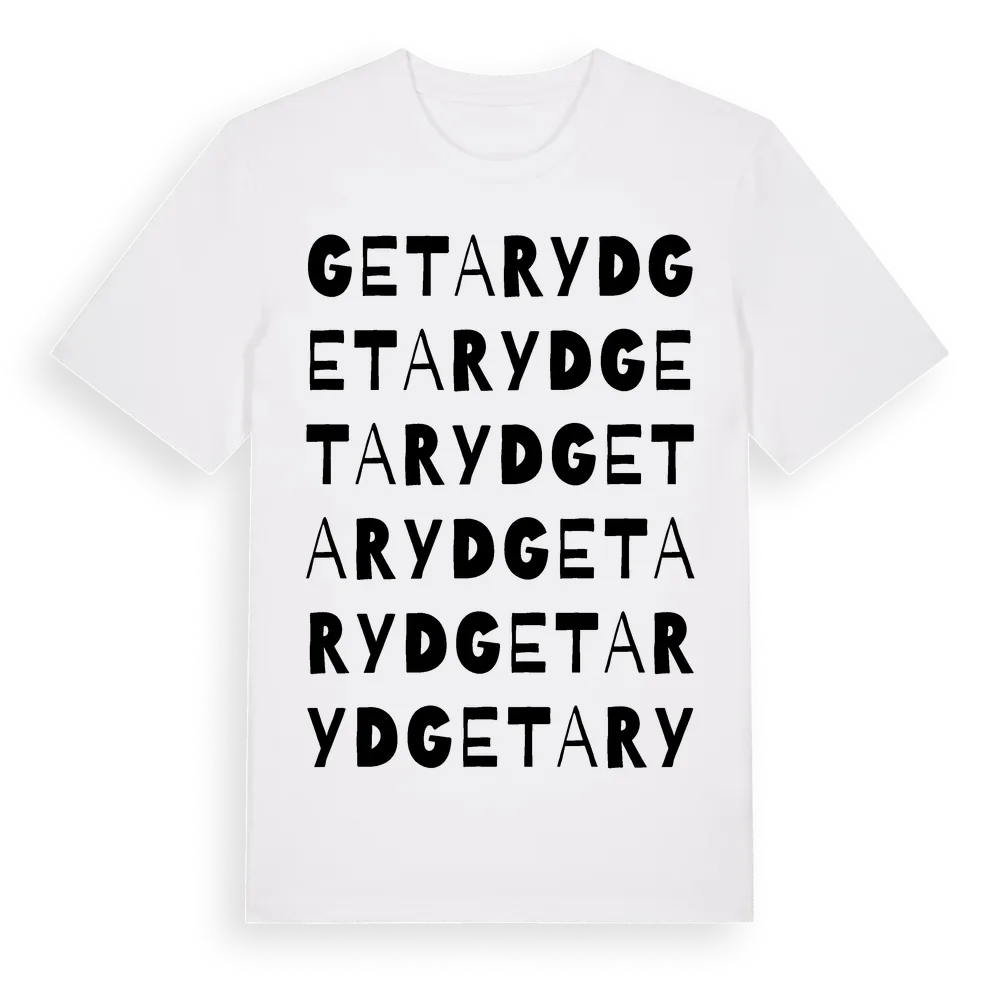 Getaryd ordlek t-shirt är inspirerad av Getaryd i Kronobergs län, Sverige. Tröjan är designad för dig som har en speciell koppling till platsen – oavsett om du bor här, har rötterna här eller bara älskar Getaryd.