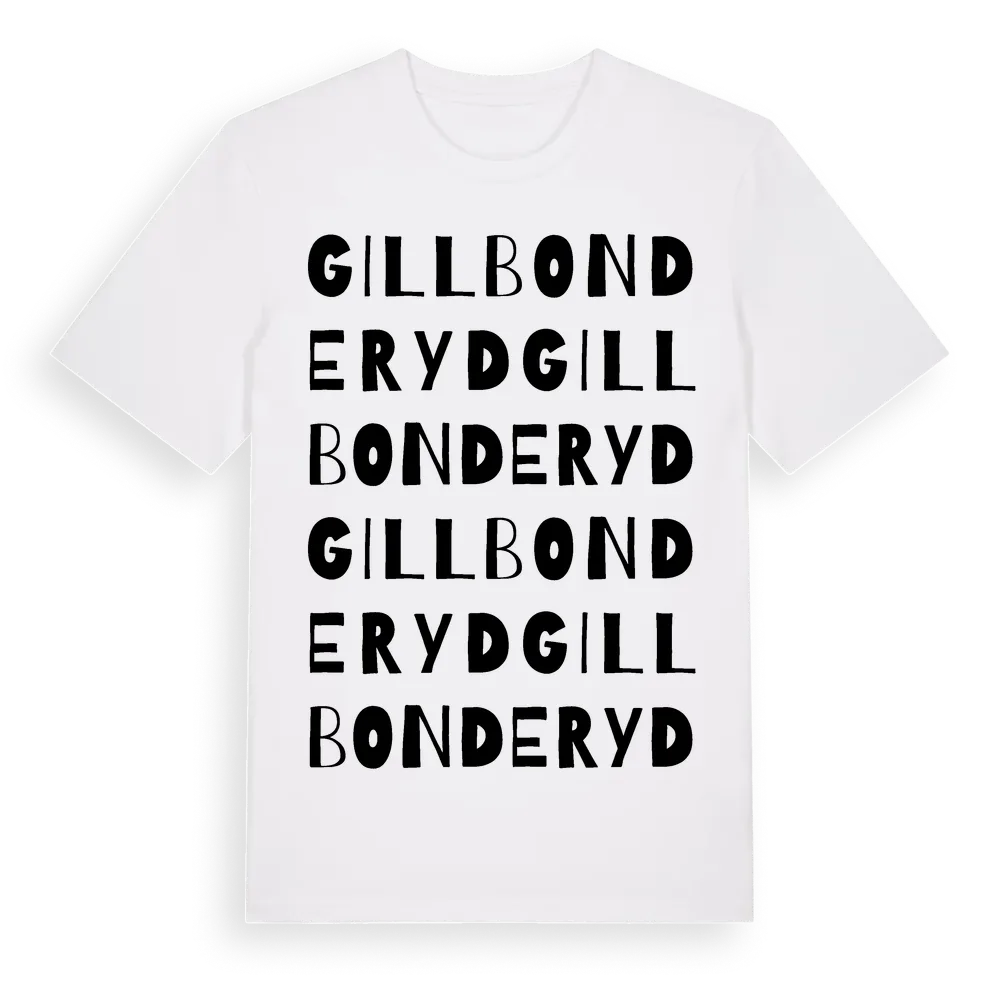 Gillbonderyd ordlek t-shirt är inspirerad av byn Gillbonderyd i Kronobergs län, Sverige. Tröjan är designad för dig som har en speciell koppling till platsen – oavsett om du bor här, har rötterna här eller bara älskar Gillbonderyd.