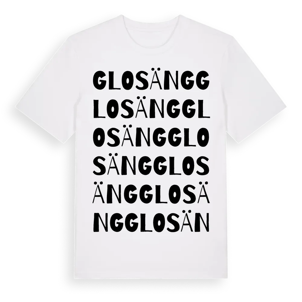 Glosäng ordlek t-shirt är inspirerad av byn Glosäng i Kronobergs län, Sverige. Tröjan är designad för dig som har en speciell koppling till platsen – oavsett om du bor här, har rötterna här eller bara älskar Glosäng.
