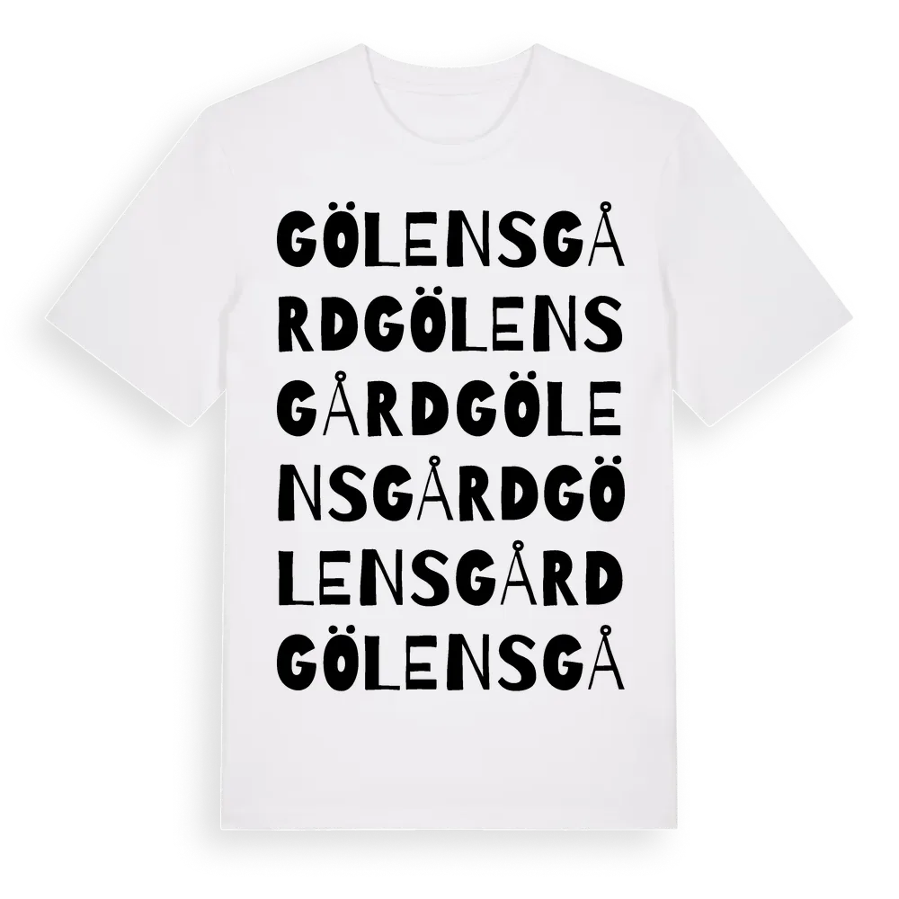 Gölensgård ordlek t-shirt är inspirerad av Gölensgård i Kronobergs län, Sverige. Tröjan är designad för dig som har en speciell koppling till platsen – oavsett om du bor här, har rötterna här eller bara älskar Gölensgård.