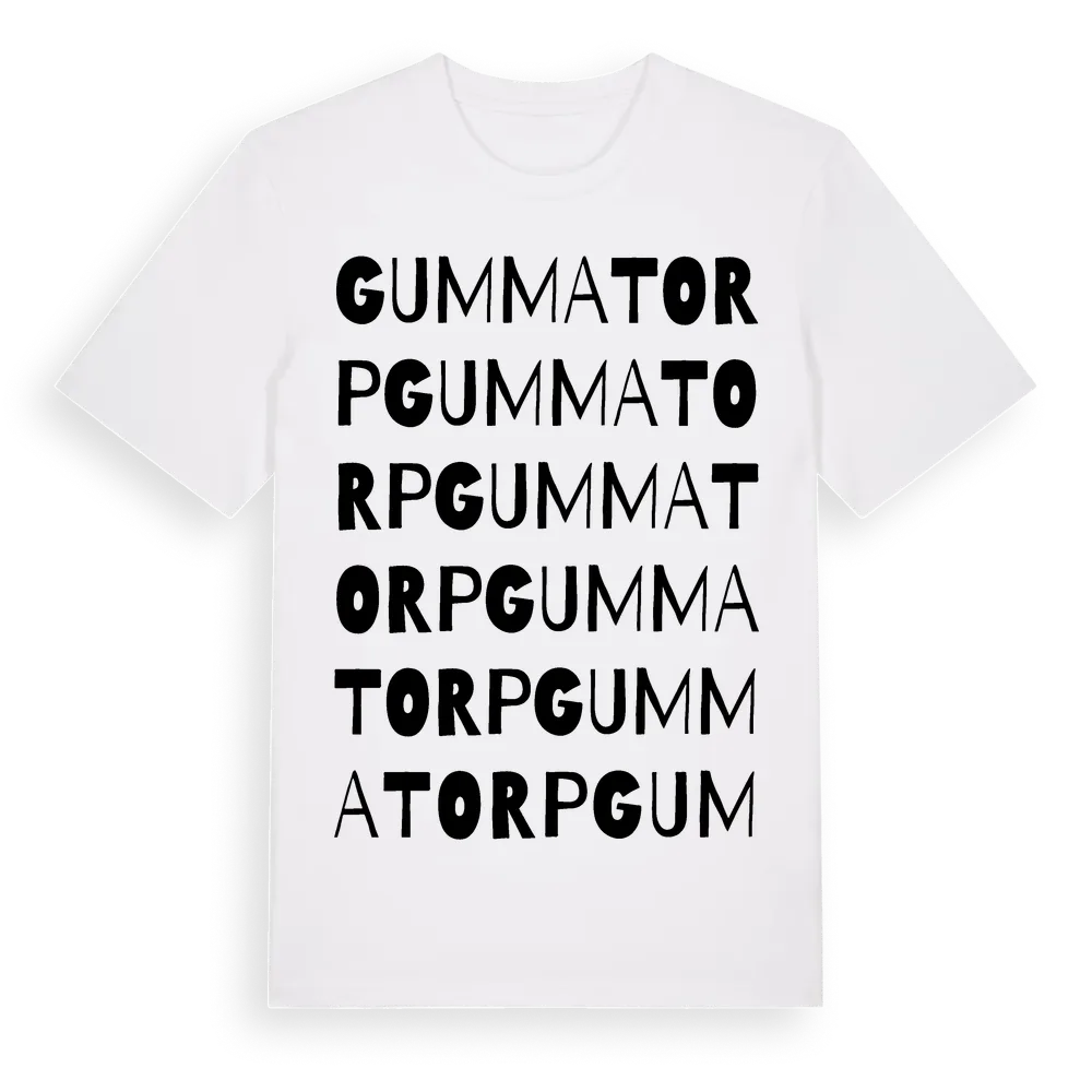 Gummatorp ordlek t-shirt är inspirerad av byn Gummatorp i Kronobergs län, Sverige. Tröjan är designad för dig som har en speciell koppling till platsen – oavsett om du bor här, har rötterna här eller bara älskar Gummatorp.