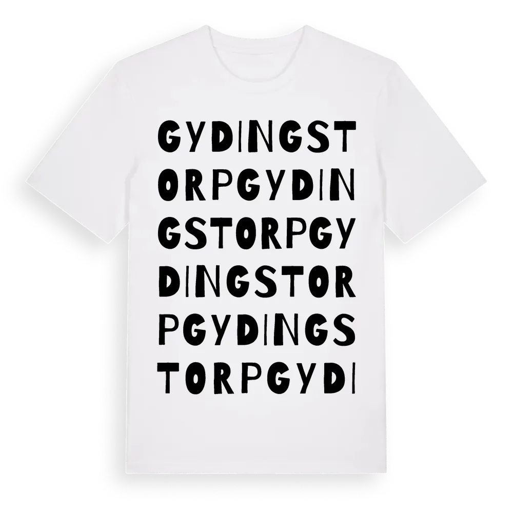 Gydingstorp ordlek t-shirt är inspirerad av byn Gydingstorp i Kronobergs län, Sverige. Tröjan är designad för dig som har en speciell koppling till platsen – oavsett om du bor här, har rötterna här eller bara älskar Gydingstorp.