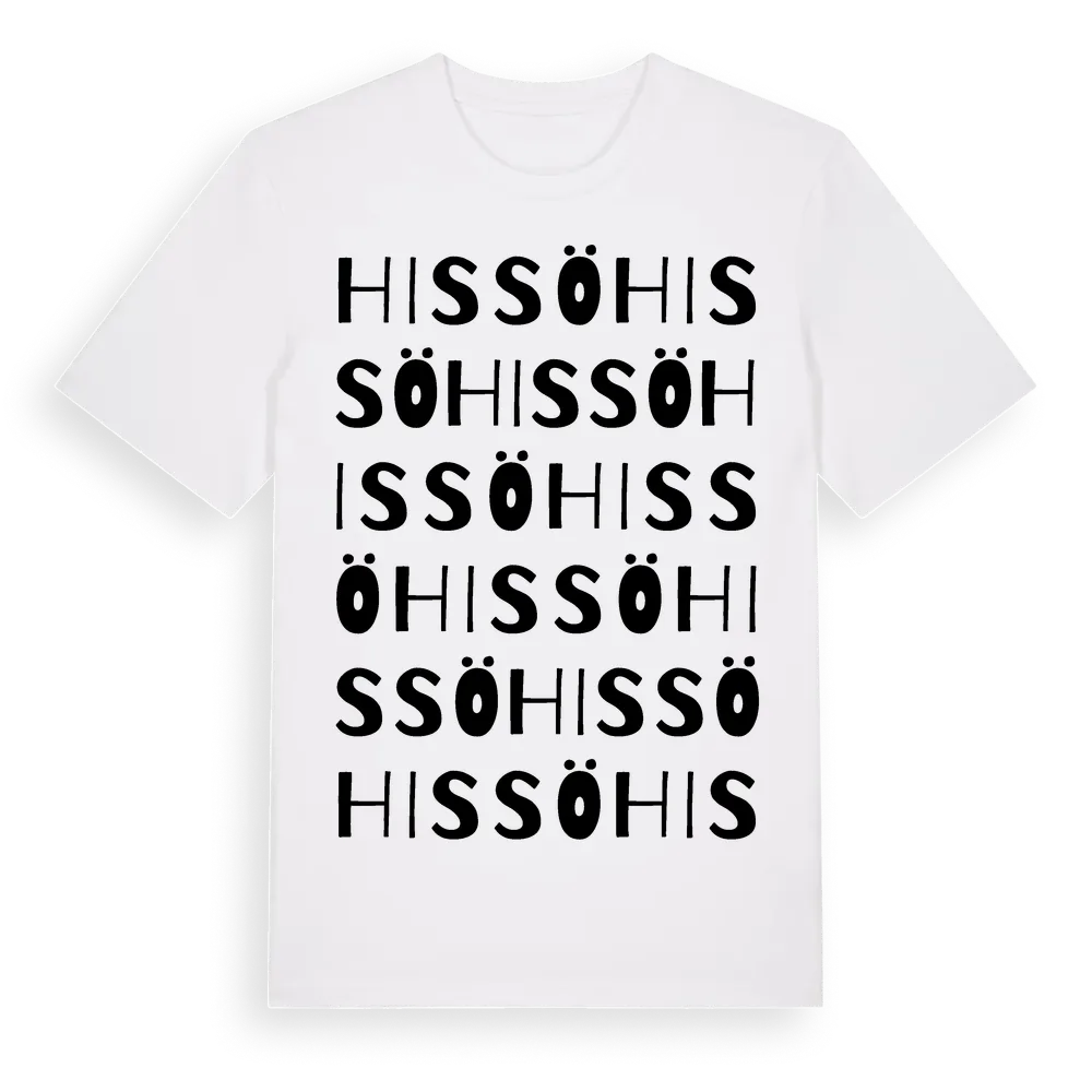 En ordlek byggd på Hissös namn. Subtilt och klurig – ett motiv som bara de som verkligen känner platsen fullt ut förstår. Premium bomull, unisex – från ön Hissö i Kronobergs län.