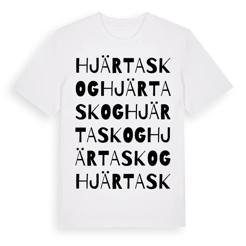 Hjärtaskog ordlek t-shirt är inspirerad av Hjärtaskog i Kronobergs län, Sverige. Tröjan är designad för dig som har en speciell koppling till platsen – oavsett om du bor här, har rötterna här eller bara älskar Hjärtaskog.