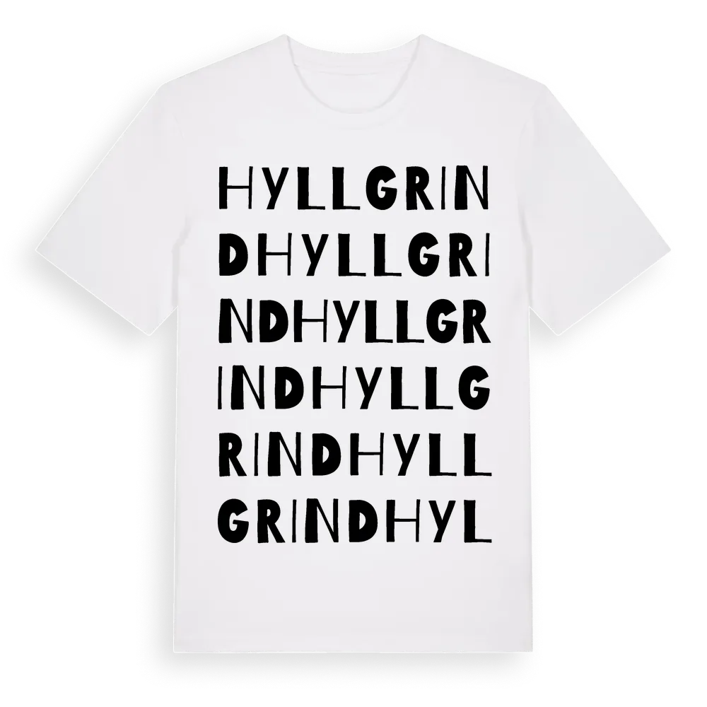 Hyllgrind ordlek t-shirt är inspirerad av Hyllgrind i Kronobergs län, Sverige. Tröjan är designad för dig som har en speciell koppling till platsen – oavsett om du bor här, har rötterna här eller bara älskar Hyllgrind.