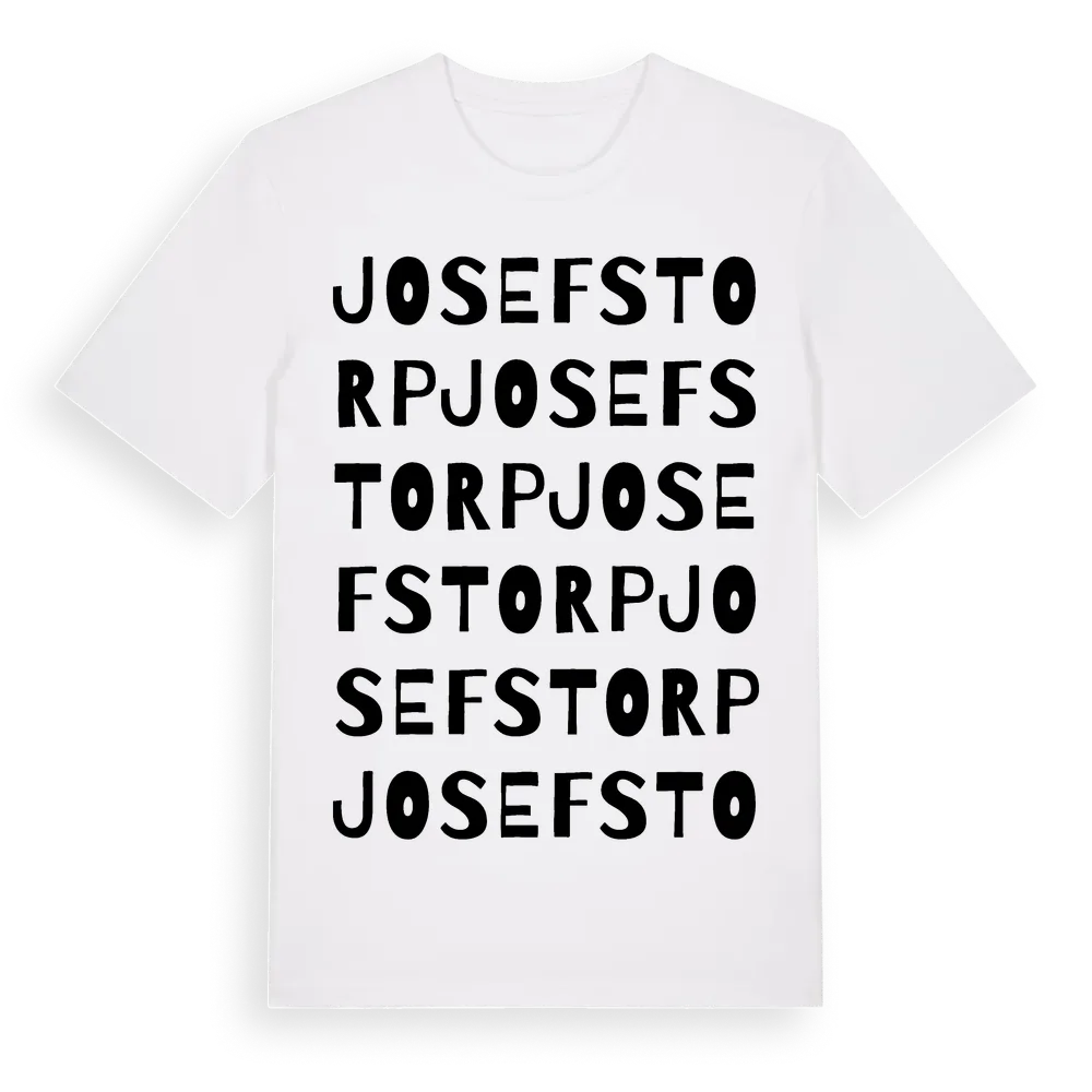 Josefstorp ordlek t-shirt är inspirerad av Josefstorp i Kronobergs län, Sverige. Tröjan är designad för dig som har en speciell koppling till platsen – oavsett om du bor här, har rötterna här eller bara älskar Josefstorp.