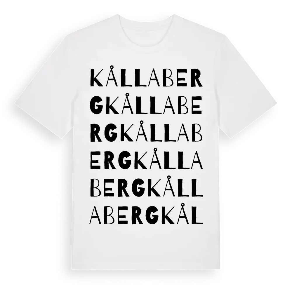Kållaberg ordlek t-shirt är inspirerad av byn Kållaberg i Kronobergs län, Sverige. Tröjan är designad för dig som har en speciell koppling till platsen – oavsett om du bor här, har rötterna här eller bara älskar Kållaberg.