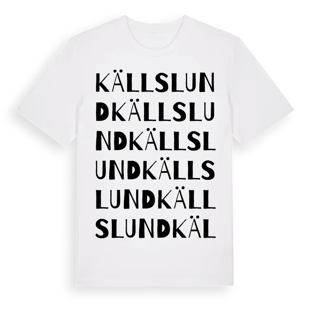Källslund ordlek t-shirt är inspirerad av Källslund i Kronobergs län, Sverige. Tröjan är designad för dig som har en speciell koppling till platsen – oavsett om du bor här, har rötterna här eller bara älskar Källslund.