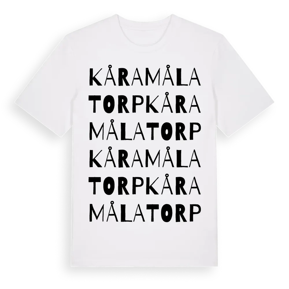 Kåramålatorp ordlek t-shirt är inspirerad av Kåramålatorp i Kronobergs län, Sverige. Tröjan är designad för dig som har en speciell koppling till platsen – oavsett om du bor här, har rötterna här eller bara älskar Kåramålatorp.