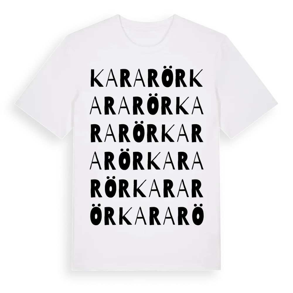 Kararör ordlek t-shirt är inspirerad av Kararör i Kronobergs län, Sverige. Tröjan är designad för dig som har en speciell koppling till platsen – oavsett om du bor här, har rötterna här eller bara älskar Kararör.