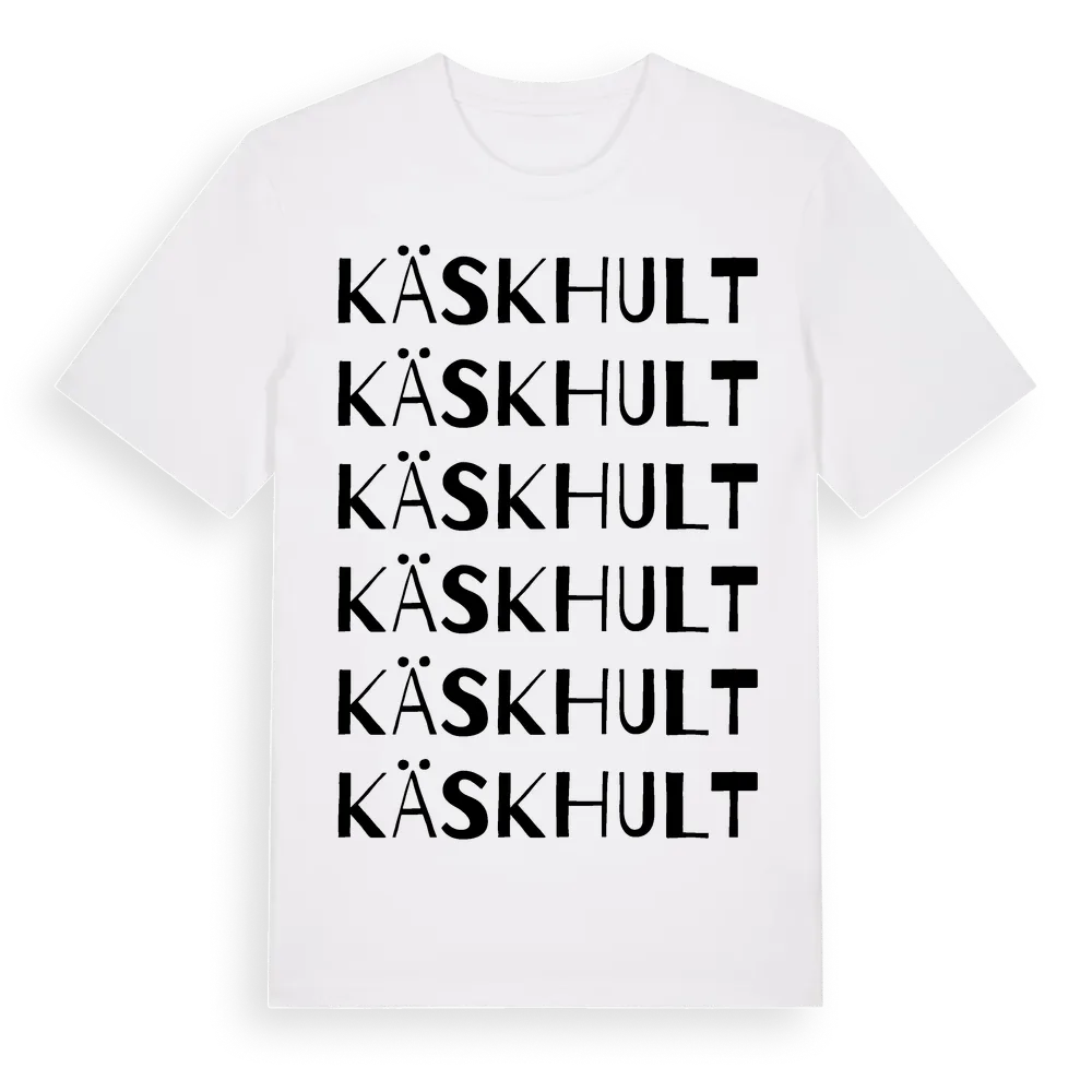 Käskhult ordlek t-shirt är inspirerad av byn Käskhult i Kronobergs län, Sverige. Tröjan är designad för dig som har en speciell koppling till platsen – oavsett om du bor här, har rötterna här eller bara älskar Käskhult.
