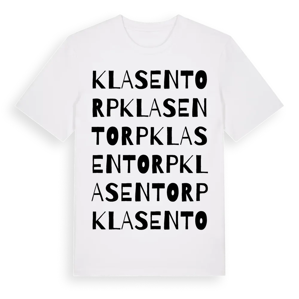Klasentorp ordlek t-shirt är inspirerad av byn Klasentorp i Kronobergs län, Sverige. Tröjan är designad för dig som har en speciell koppling till platsen – oavsett om du bor här, har rötterna här eller bara älskar Klasentorp.