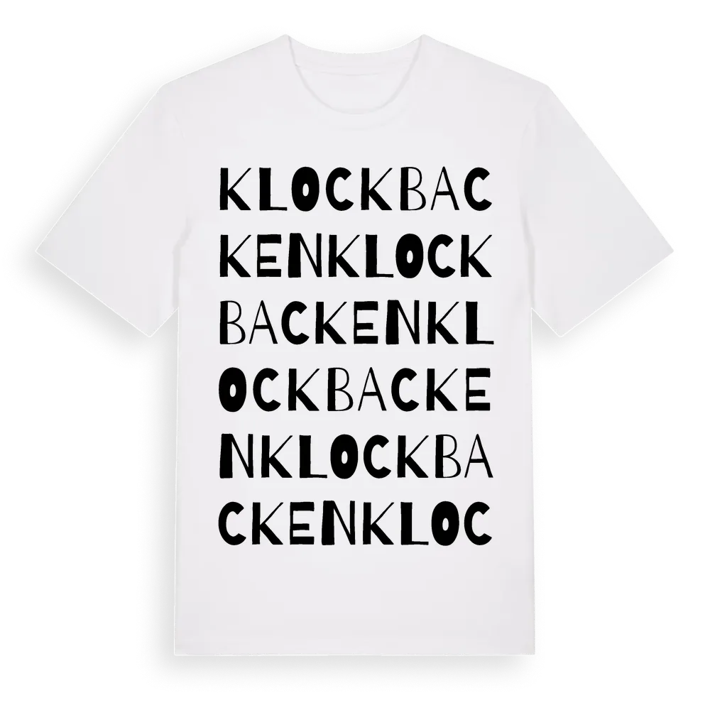 Klockbacken ordlek t-shirt är inspirerad av Klockbacken i Kronobergs län, Sverige. Tröjan är designad för dig som har en speciell koppling till platsen – oavsett om du bor här, har rötterna här eller bara älskar Klockbacken.