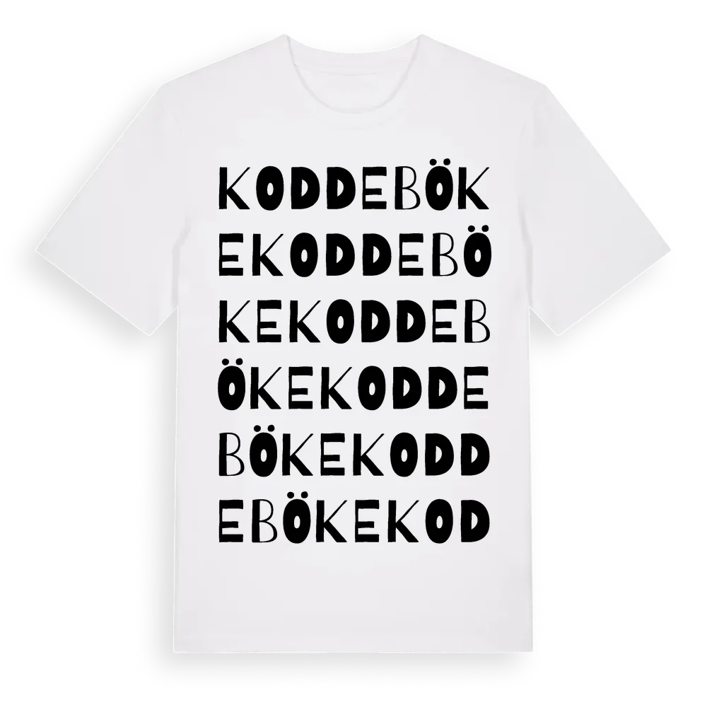 Koddeböke ordlek t-shirt är inspirerad av byn Koddeböke i Kronobergs län, Sverige. Tröjan är designad för dig som har en speciell koppling till platsen – oavsett om du bor här, har rötterna här eller bara älskar Koddeböke.