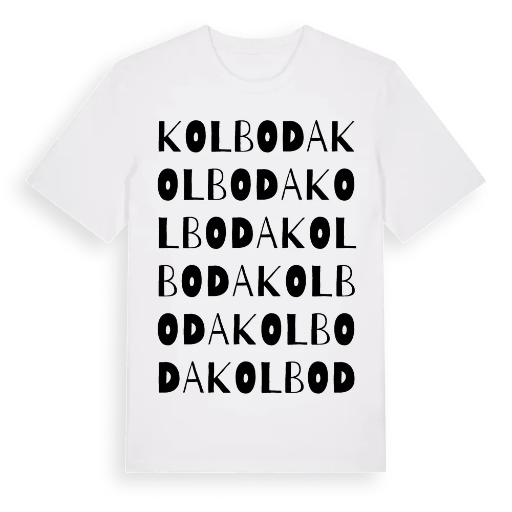 Kolboda ordlek t-shirt är inspirerad av Kolboda i Kronobergs län, Sverige. Tröjan är designad för dig som har en speciell koppling till platsen – oavsett om du bor här, har rötterna här eller bara älskar Kolboda.